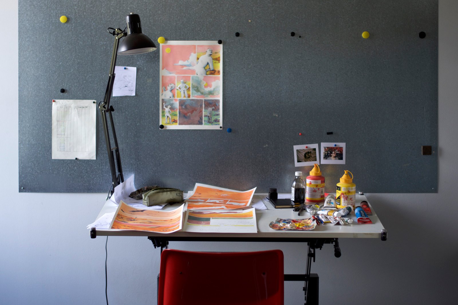 Frederik Van Den Stock, que j’avais déjà photographié en nocturne, cette fois-ci dans son atelier. Et un œil rapide sur des planches de son projet en cours, commencé en décembre 2017. Je retournerais le voir :