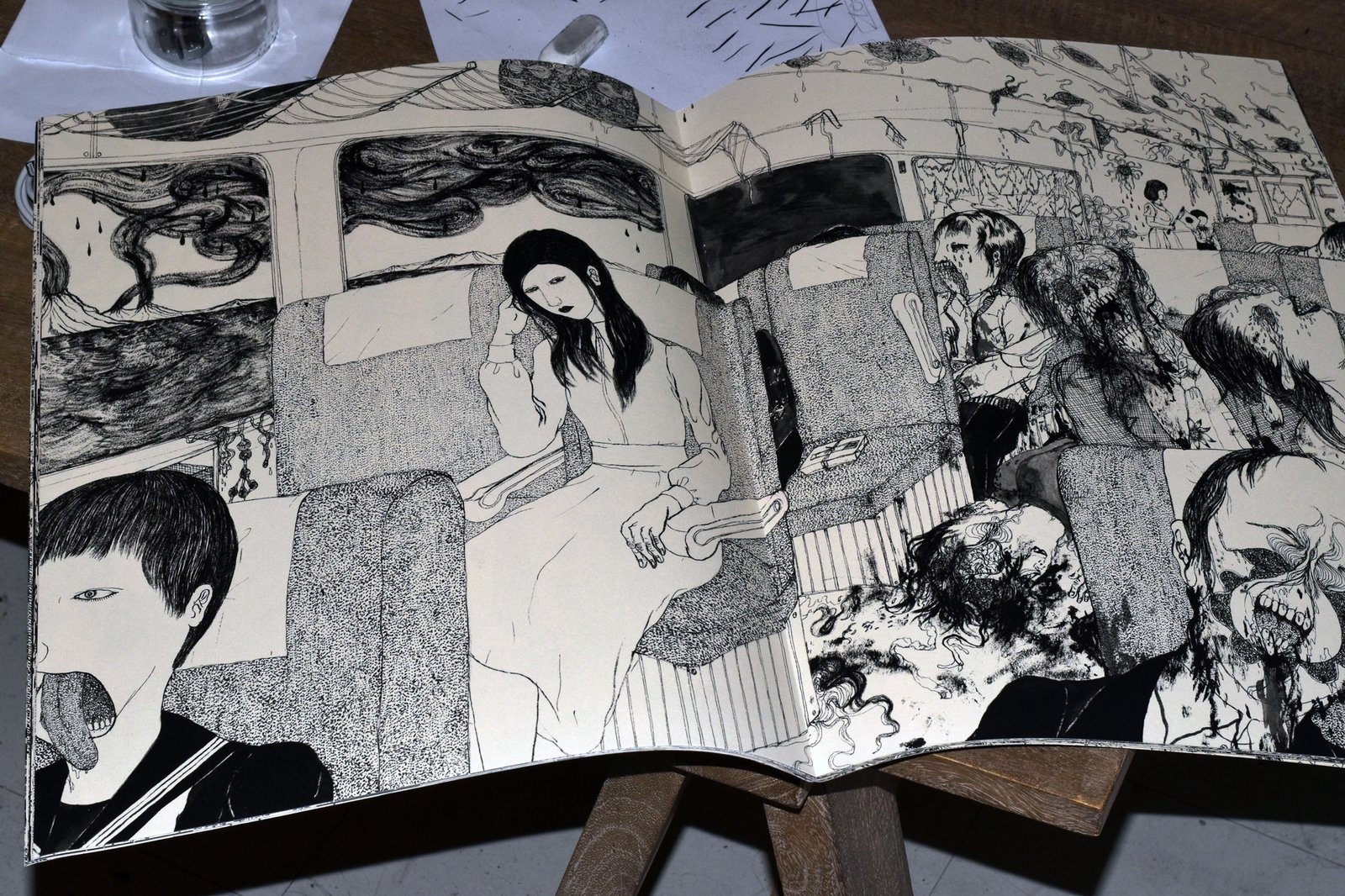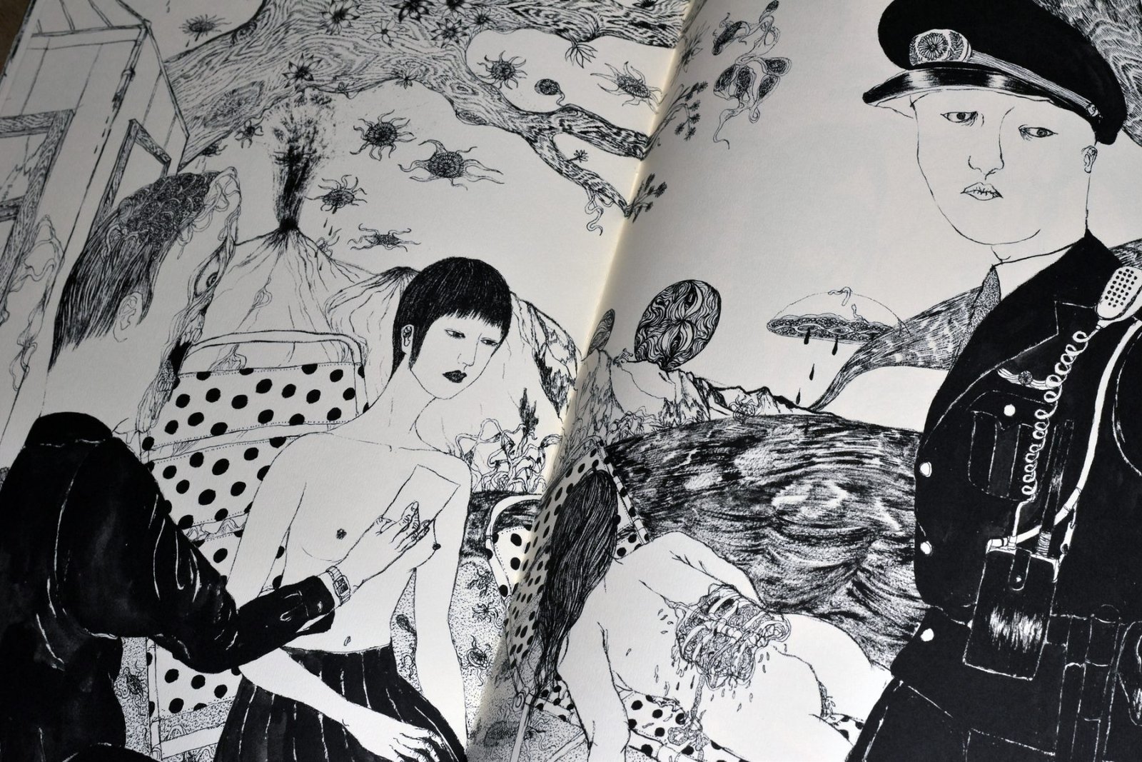 United Dead Artists reprend à son compte le célèbre format 30X40 de Futuropolis pour sa revue et des beaux livres d’images, comme celui-ci de dessins horrifiques et morbides du japonais Daisuke Ichiba, l’un des maîtres contemporains de l’Ero Guro