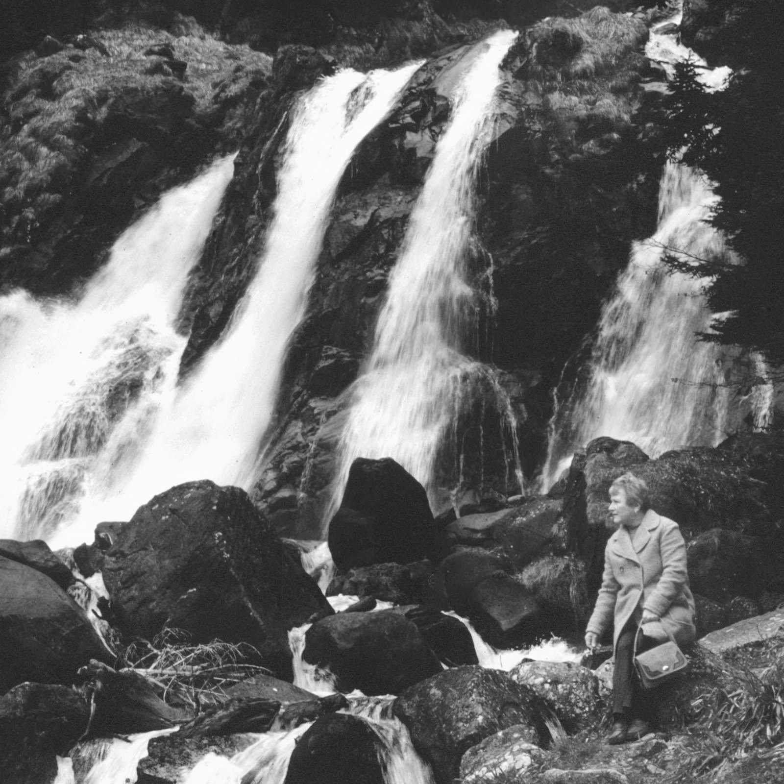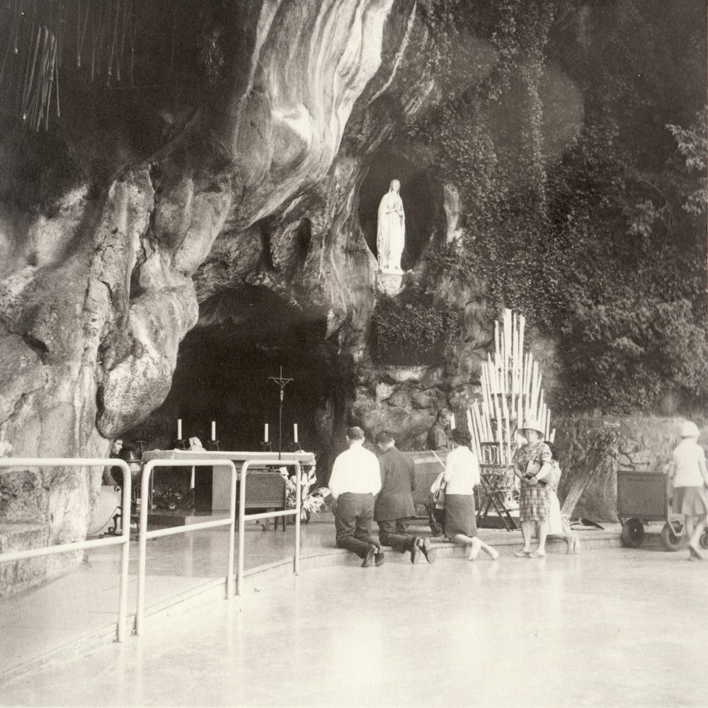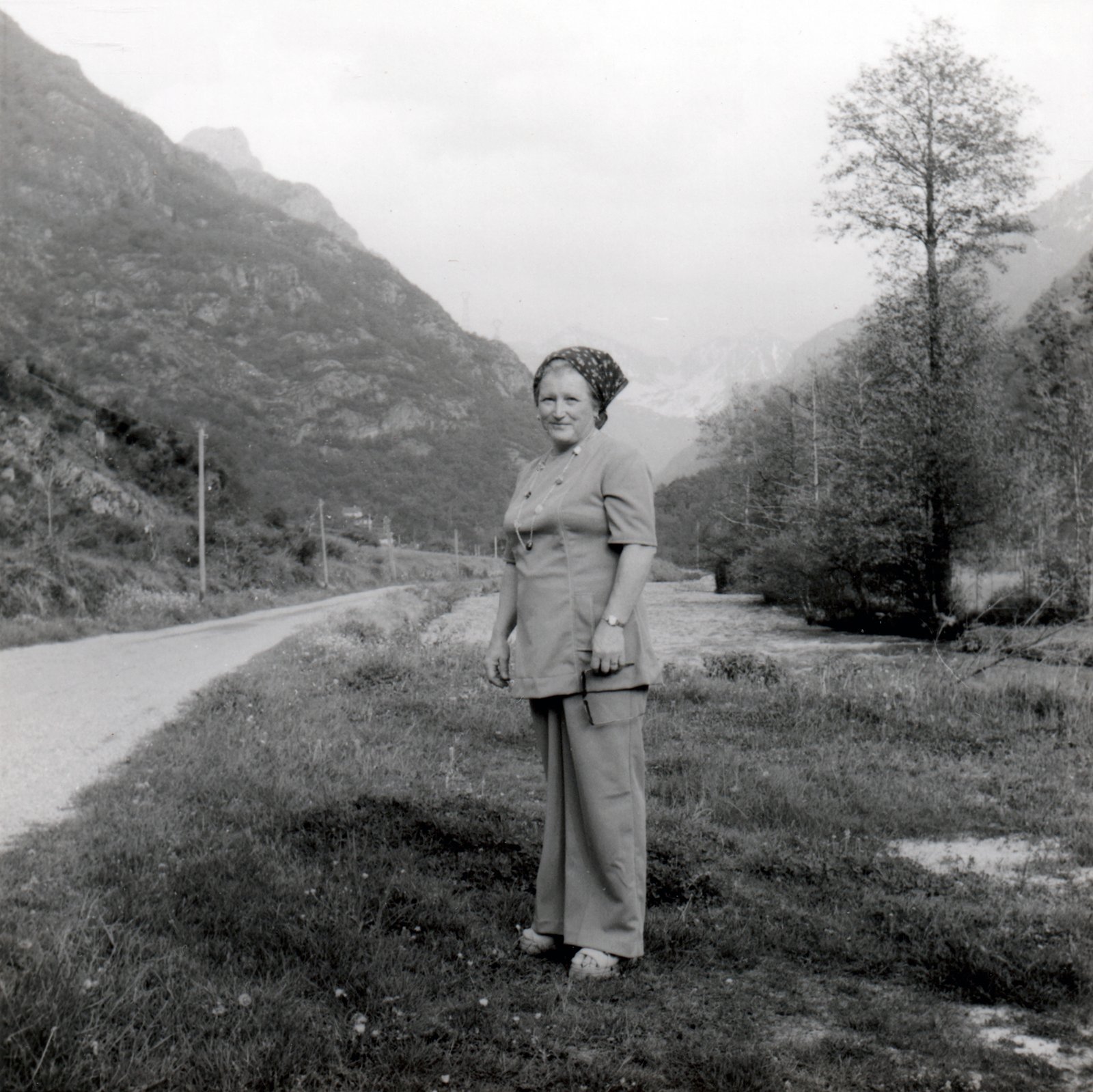 Bien avant le selfie (cette photo qui dit, entre autres, « je suis là »), ma grand-mère paternelle était déjà là, et là, et là encore, et ici aussi… avec la complicité de mon grand-père photographe amateur. Dans les archives photo de ce dernier, je suis tombé sur cette série de tirages papier de paysages incluant systématiquement ma grand-mère. Photos carrées, 6X6, ce qui indique un mouvement particulier du photographe, penchant la tête sur une image déjà là. Le format 6X6 produit des images volontaires, très cadrées, en légère contre-plongée puisque l’appareil est tenu plus bas qu’un reflex.