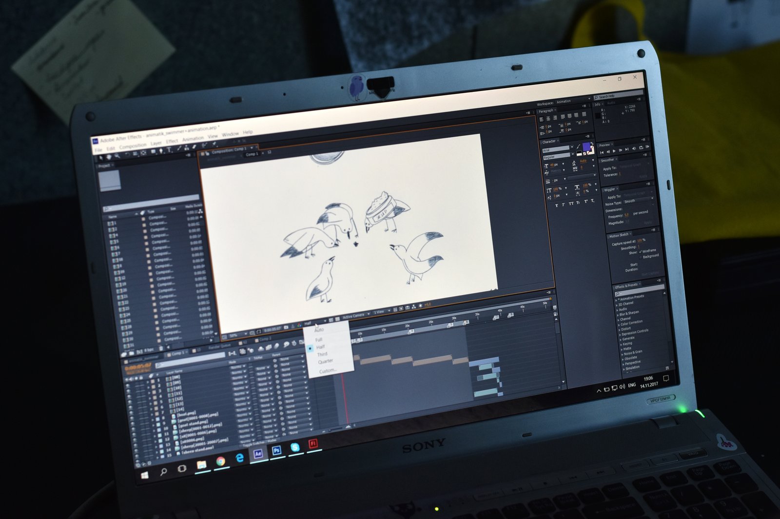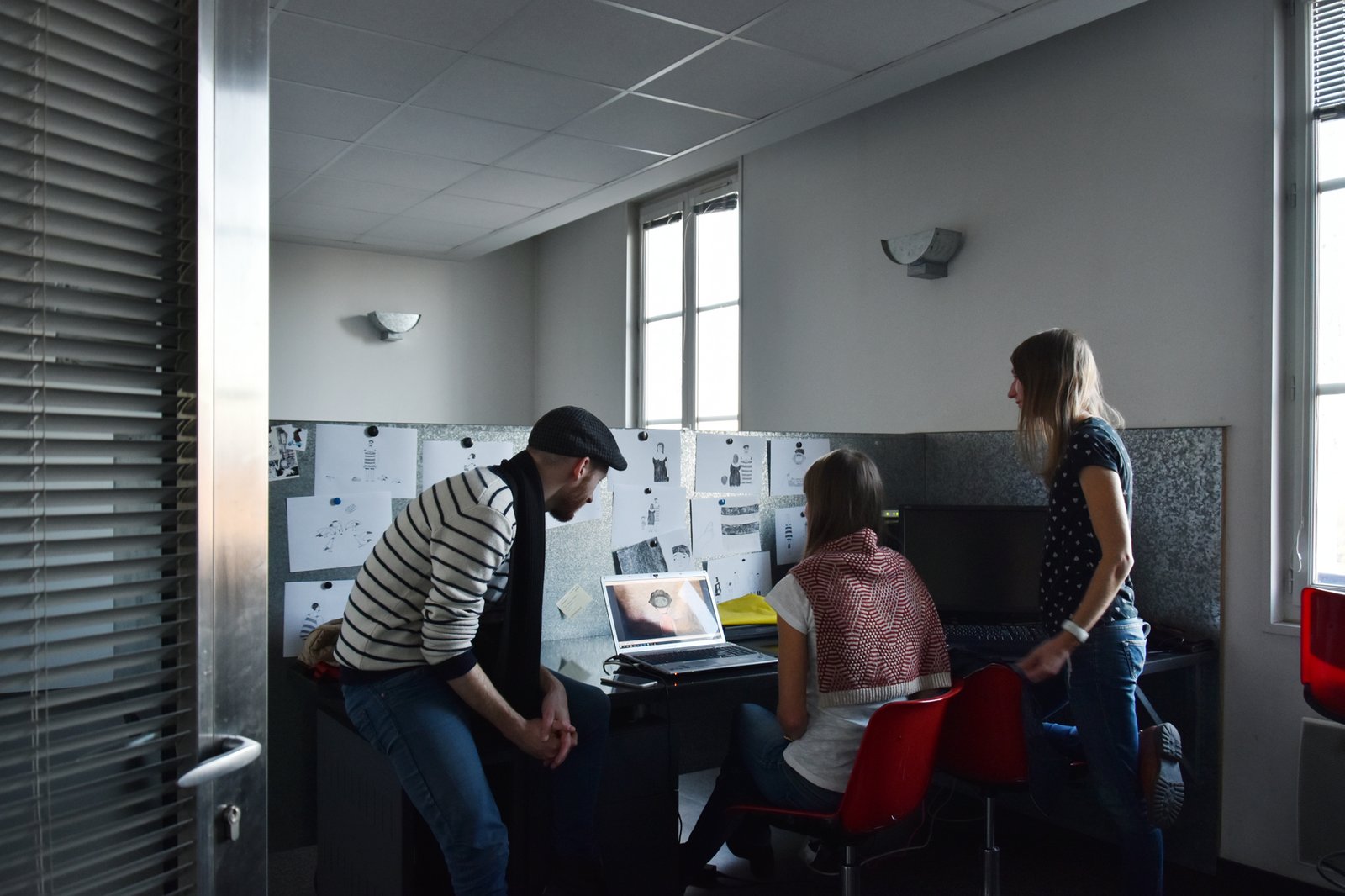 En fin d’après-midi, avec mon pote Elric Dufau, nous sommes passés voir les sœurs Tatiana & Olga Poliektova, deux jeunes réalisatrices, animatrices et illustratrices russes dans leur atelier de La Maison des auteurs, à Angoulême. Elles travaillent en traditionnel, dessinant sur feuille libre toutes les images clefs, avant d’animer dans After Effects.