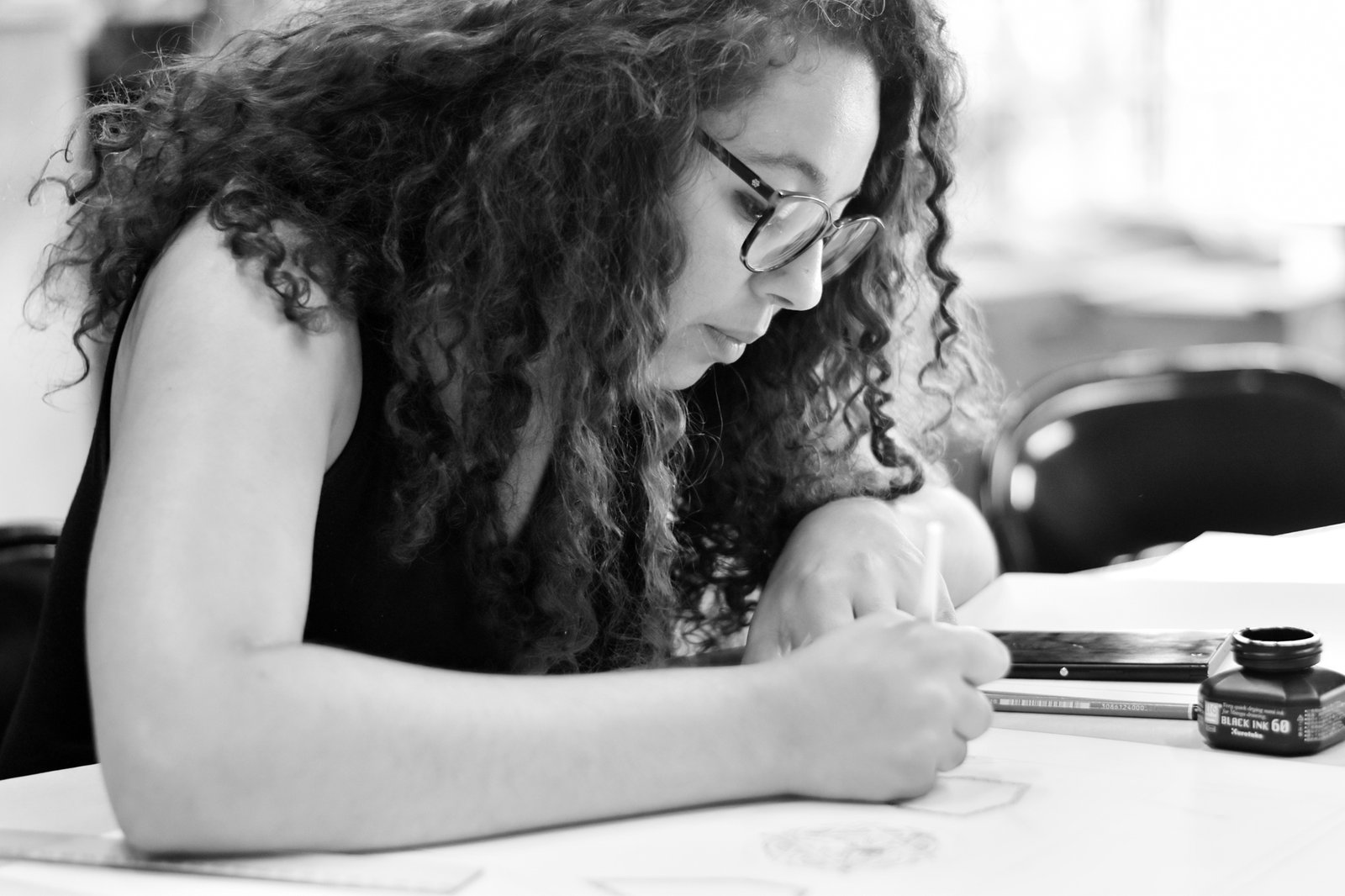 Merieme Msf pendant sa résidence Womarts. Merieme Msf est une illustratrice et autrice marocaine engagée pour le droit des femmes et qui participe à plusieurs projets collectifs. Elle participe d’ailleurs au réseau Marsam (que je préside). Son tumblr : http://meriememesfioui.tumblr.com