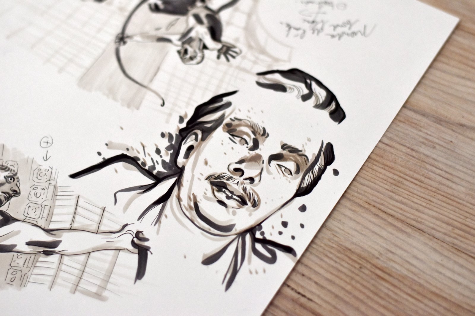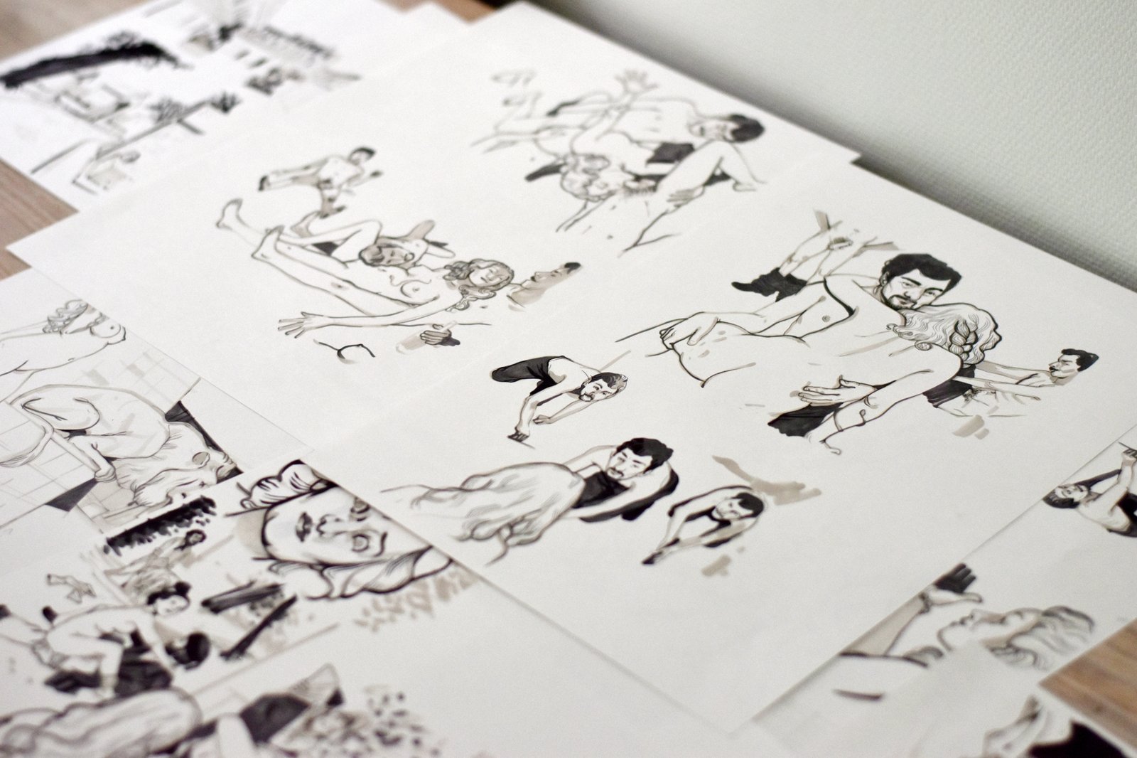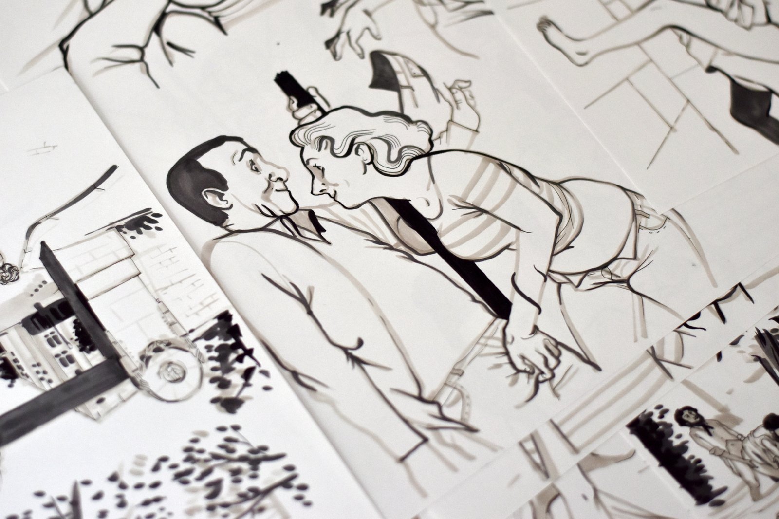 Il y a quelque chose de souple et énergique à la fois qui apaise et séduit l’oeil dans l’élégant trait ligne clair au réalisme légèrement cartoonesque de Natacha Sicaux (et des évocations 30′ et 70′). Pour être juste, il faudrait noter aussi la solidité structurelle de ses figures… Mais sa qualité principale me semble la lisibilité de ses traits tendus comme des coups de fouet. En général. Mais aujourd’hui je découvre des planches entachées d’un lavis jeté qui trouble la tension de sa ligne et donne un peu de nuance et de chair, peut-être même une touche de pictorialisme en accord avec le sujet de cette « BD de cul » qu’elle réalise pour un numéro spécial de Fluide Glacial. On y distingue la figure de Victor Noir et des tableaux qui s’encanaillent. Je n’ai pas feuilleté un Fluide Glacial depuis peut-être 20 ans, mais je crois que jetterais un œil curieux sur ce prochain numéro spécial !