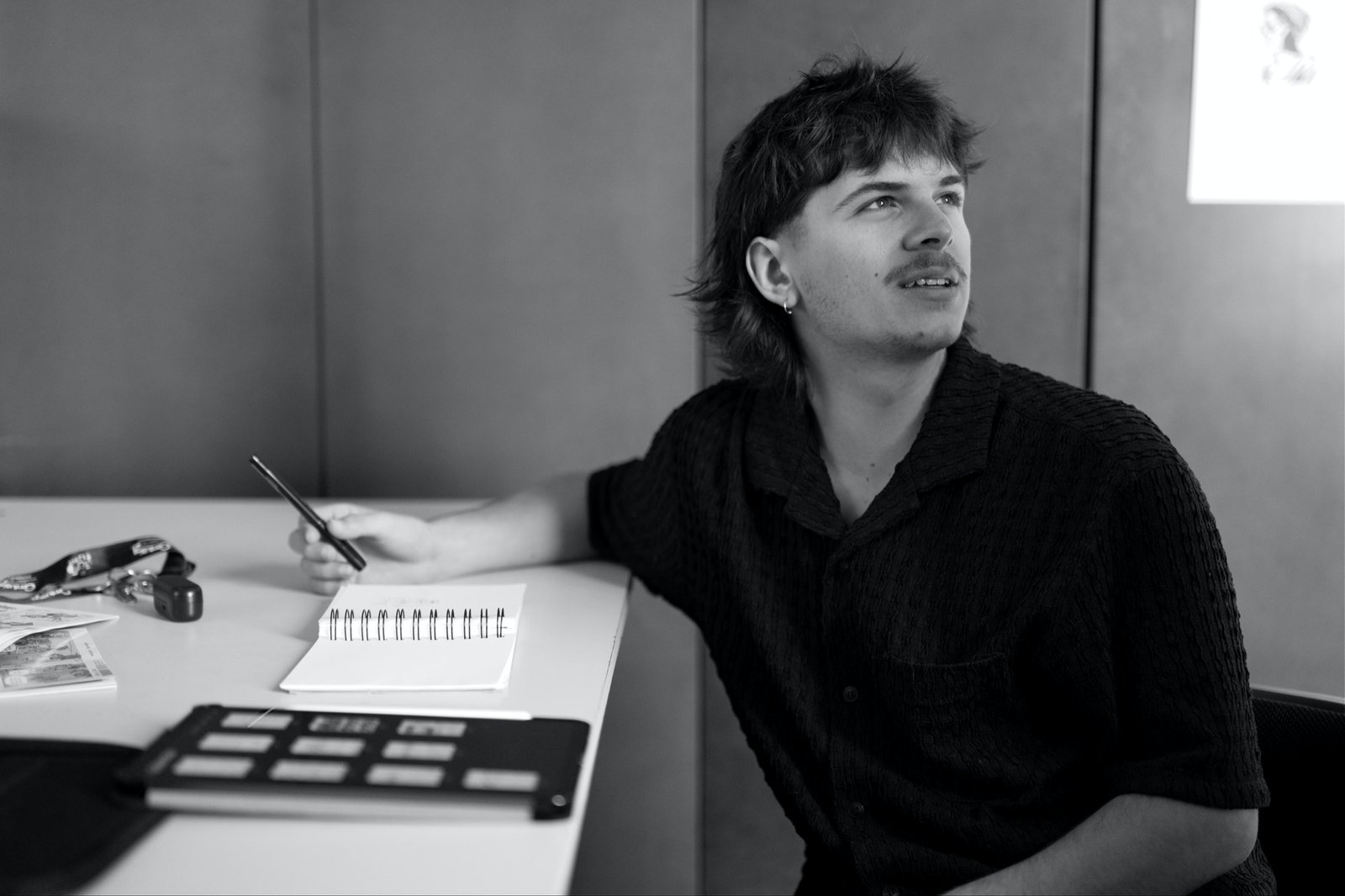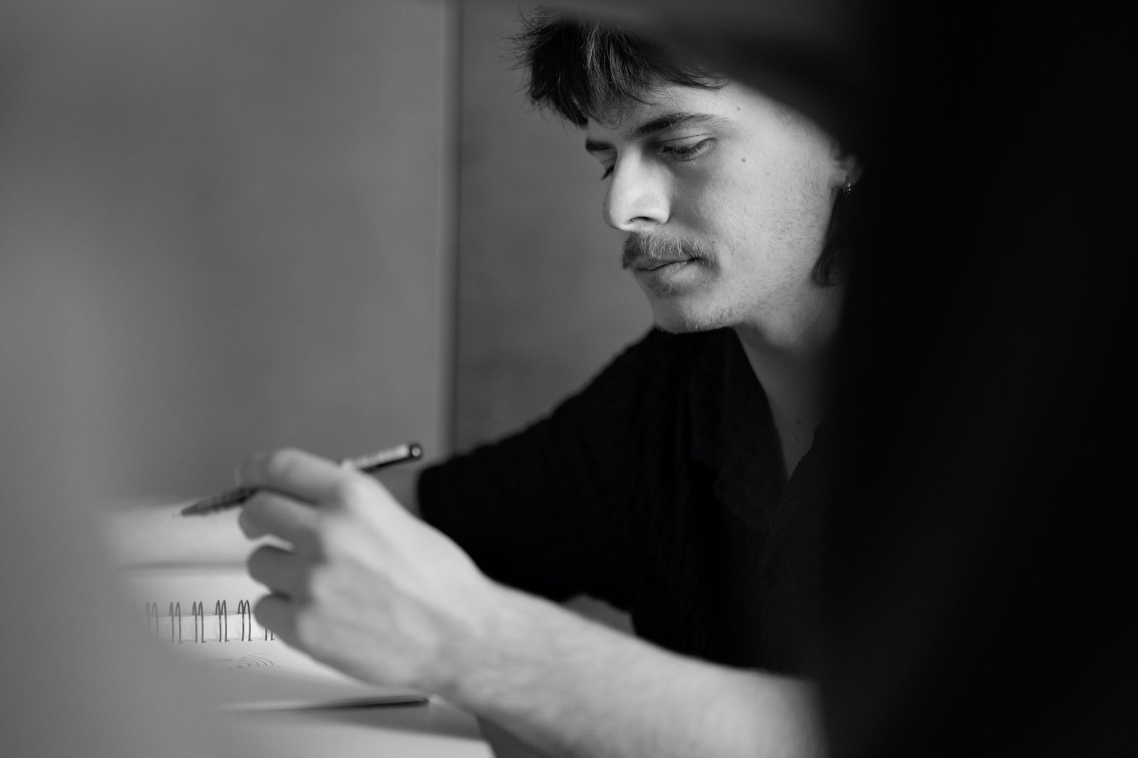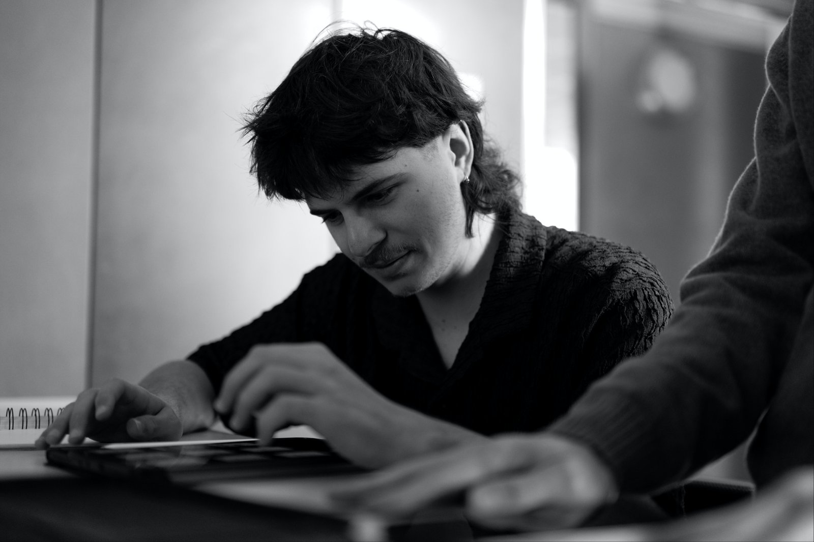 Avec Elric Dufau, nous sommes passé voir « Tibali » (Lilian), un jeune auteur actuellement en résidence à la maison des auteurs, et qui, accessoirement, est aussi un ancien élève d’Elric ! ET qui EN PLUS, est installé dans l’atelier que nous partagions en 2015 avec Elric !