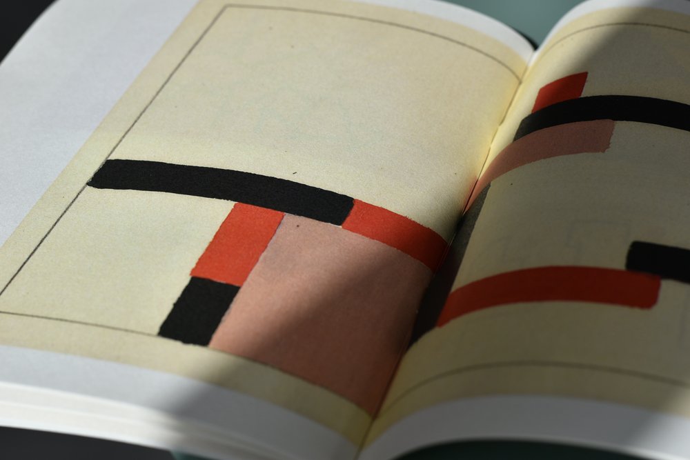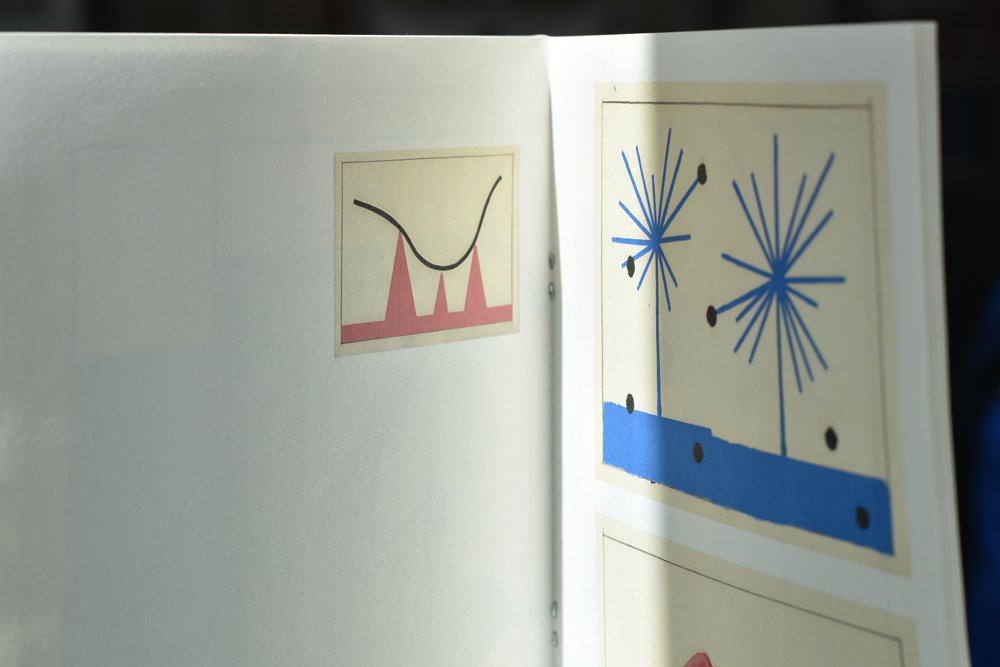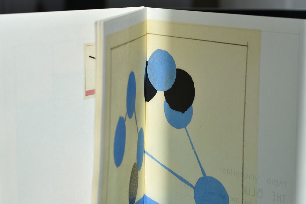 « The blue and the abstract truth » de Fabio Viscogliosi, aux éditions les machines, est un cahier modeste 18X24 cm, agrafé, présentant sur un papier crème 40 pages de petites abstractions minimalistes en couleur, gouaches sur papier (je crois), ludiques et même enfantines, mais démontrant une évidente puissance plastique.