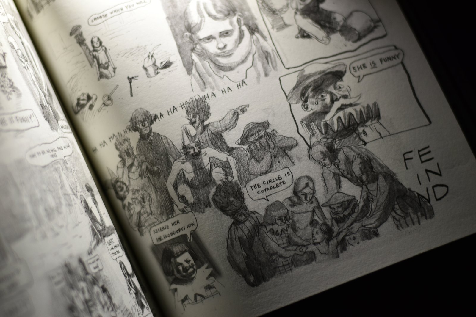 Je feuillette là le N° 4, auquel participe Céline Guichard, sur le thème « Death & Resurrection ». Dos carré, souple un peu difficile à ouvrir, mais ça vaut le coup de forcer un peu pour découvrir cette revue qui aime le dessin au crayon, vraiment !